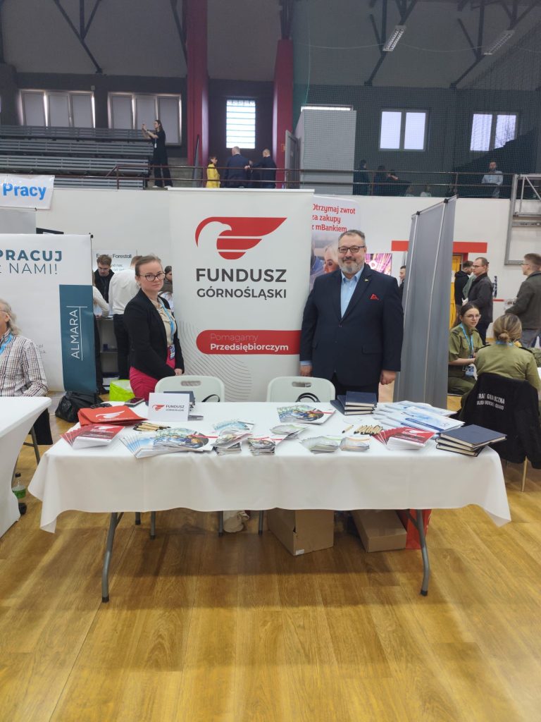 Nasze stoisko odwiedziły dziesiątki studentów i absolwentów zainteresowanych pierwszymi doświadczeniami zawodowymi, praktykami i pomysłami na rozwój własnej działalności. Rozmawialiśmy o między innymi o możliwościach finansowania oraz programach doradczych i szkoleniowych wspierających przedsiębiorczość. Na naszym stoisku obecny był również wiceprezes Funduszu Górnośląskiego – Mariusz Mandat, który bezpośrednio odpowiadał na pytania uczestników i dzielił się wiedzą o naszej działalności.