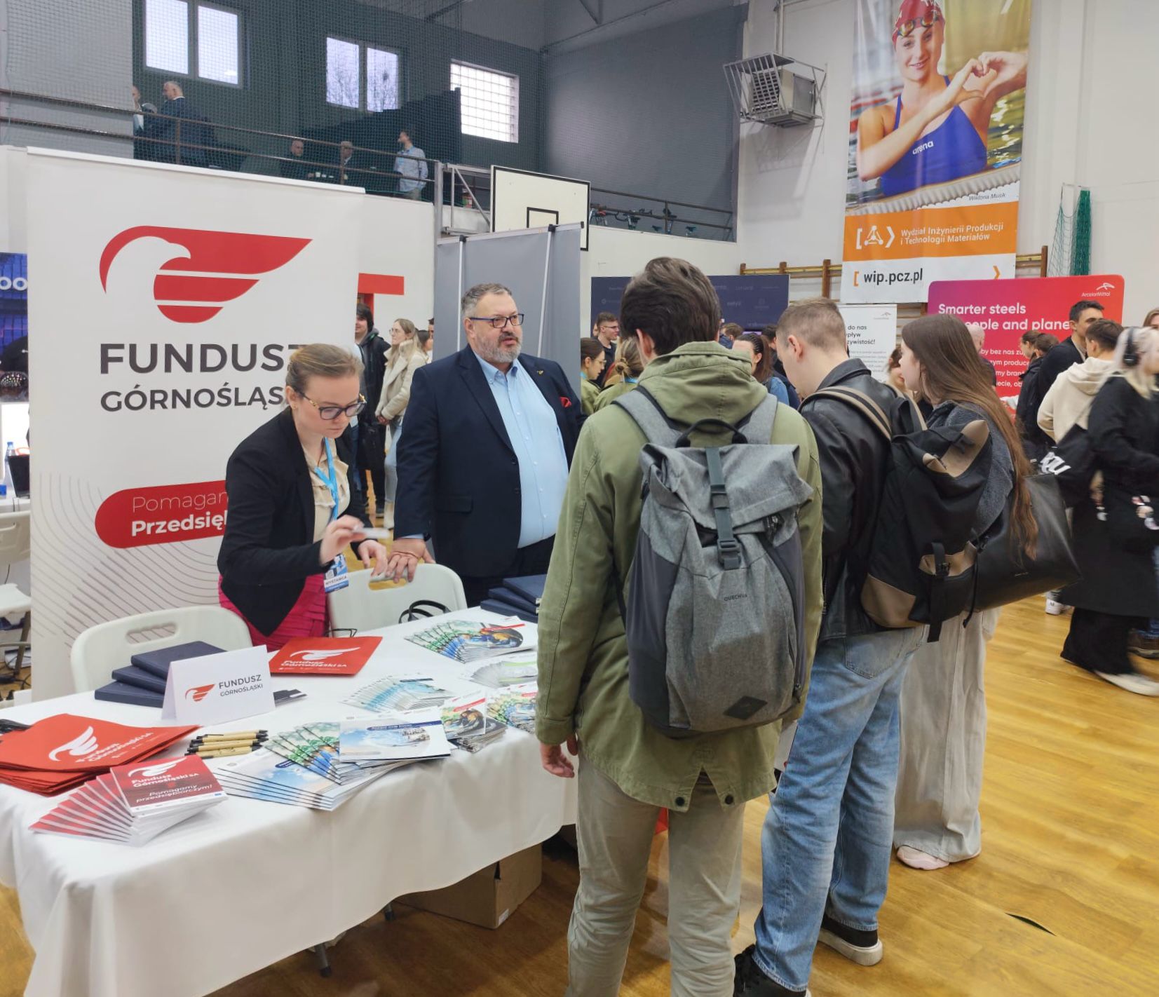 Nasze stoisko odwiedziły dziesiątki studentów i absolwentów zainteresowanych pierwszymi doświadczeniami zawodowymi, praktykami i pomysłami na rozwój własnej działalności. Rozmawialiśmy o między innymi o możliwościach finansowania oraz programach doradczych i szkoleniowych wspierających przedsiębiorczość. Na naszym stoisku obecny był również wiceprezes Funduszu Górnośląskiego – Mariusz Mandat, który bezpośrednio odpowiadał na pytania uczestników i dzielił się wiedzą o naszej działalności.