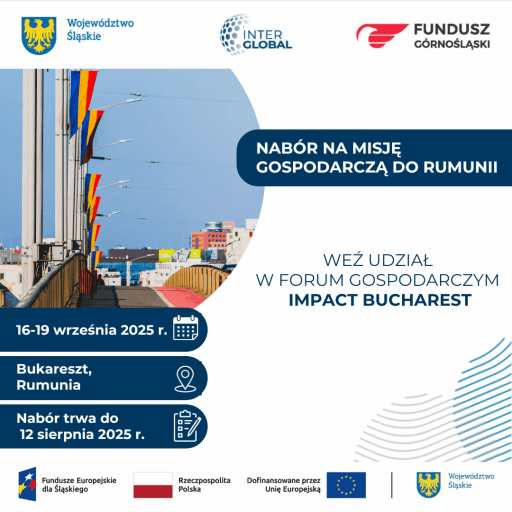 Fundusz Górnośląski oraz Urząd Marszałkowski Województwa Śląskiego serdecznie zapraszają przedsiębiorców z sektora MŚP do wzięcia udziału w wyjątkowej misji gospodarczej do Rumunii, w ramach wydarzenia IMPACT 2025! Nabór na misję trwa do 12 sierpnia. Liczba miejsc ograniczona.