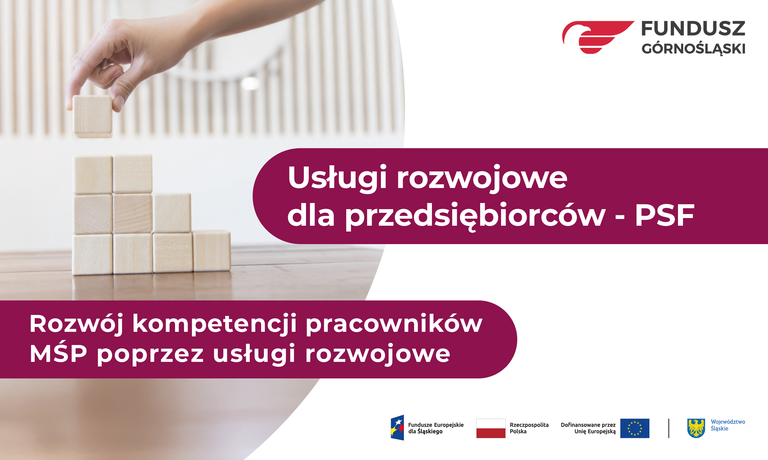 Projekt jest współfinansowany ze środków Unii Europejskiej, w ramach Programu Fundusze Europejskie dla Śląskiego 2021-2027 (Europejski Fundusz Społeczny+), Działanie 05.15 Usługi rozwojowe dla przedsiębiorców – PSF.