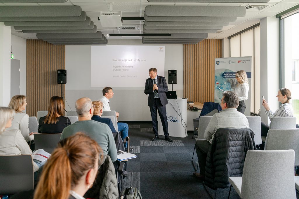 Dziś w Centrum Internacjonalizacji w Katowicach spotkaliśmy się z przedsiębiorcami z województwa śląskiego, by porozmawiać o eksporcie, ryzyku walutowym i trendach gospodarczych na świecie. Warsztaty poprowadził Marek Zuber – ekonomista i praktyk, który w przystępny sposób tłumaczył, jak podejść do tematu ekspansji zagranicznej i jak skutecznie zabezpieczać się przed zmianami kursów czy stóp procentowych.