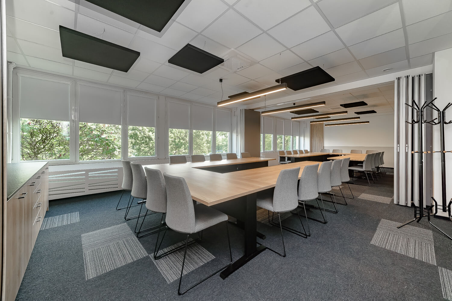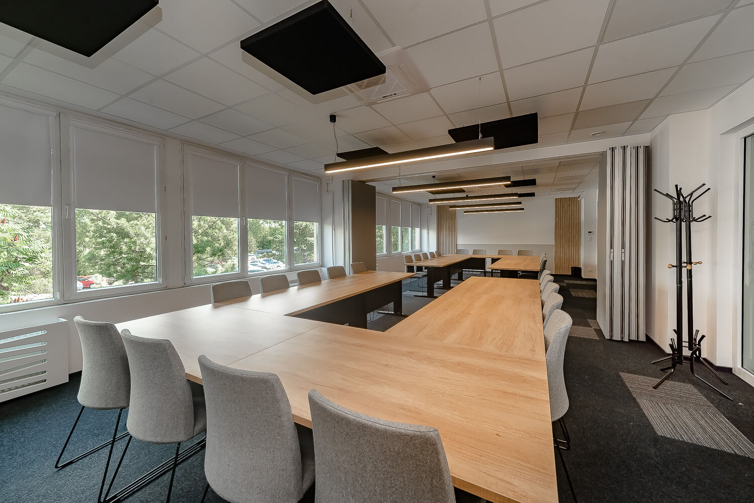 Dostosujemy układ sali do Twoich potrzeb – możesz wybrać ustawienie teatralne, szkolne, w podkowę lub warsztatowe, w zależności od charakteru wydarzenia.